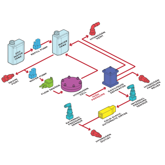| Safety | Automatic shut down - internal/external hydrogen leak, overpressure and low water | |||||