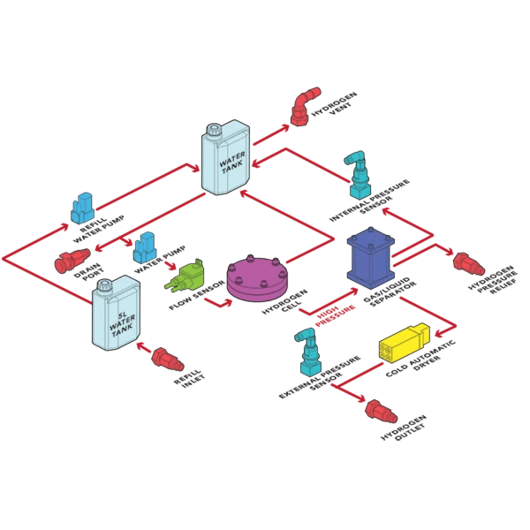 | Safety | Automatic shut down - internal/external hydrogen leak, overpressure and low water | |||||||