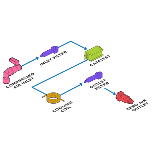 The VICI DBS ® GC Plus Rack Zero Air Generator utilizes compressed air that is prefiltered to 5 microns and then purified using a state of the art combined heated catalyst module. The output zero grade air is free from total hydrocarbons to <0.1 ppm, making it ideal for all FID applications. This purity level (measured as methane) produces a low signal to noise ratio, ensuring a flat and stable analyzer baseline.